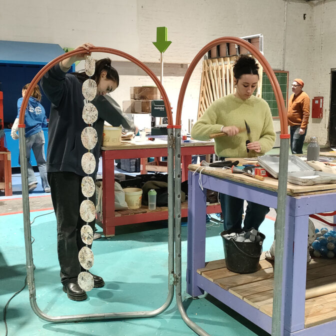En deux semaines seulement, les étudiants en DSAA Design d’espaces de l’ésaat ont relevé le défi de concevoir et construire des dispositifs low-tech pour l’Avant-Poste, bâtiment municipal de la Ville de Roubaix. Mené en partenariat avec la Direction de la Transition Écologique de la Ville de Roubaux, ce workshop a permis d’explorer, par le faire et le réemploi, de nouvelles manières d’améliorer les usages et le confort thermique des espaces de travail.