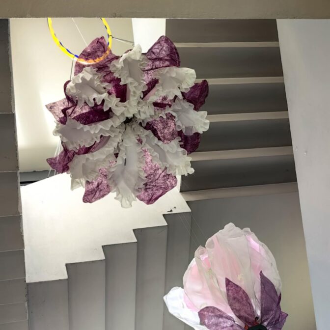 L’objectif : révéler et sublimer un espace souvent oublié de l’établissement , en y faisant éclore des créations textiles, monumentales et inattendues.