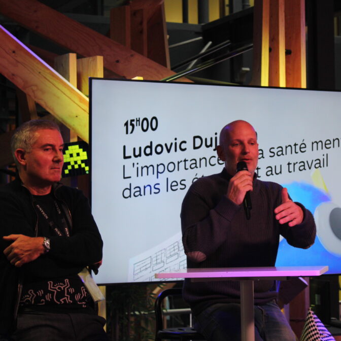 Conférence sur la santé mentale au travail et durant les études par Ludovic Dujardin, fondateur de Petit Bambou, modérateur Jean-Pierre Denève