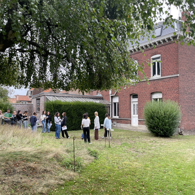 De septembre à novembre 2025, les 13 étudiants de première année du DSAA Design d’espaces : mutations, nouvelles narrations de l’ésaat ont mené un projet en collaboration avec la Ville de Lys-lez-Lannoy et la Fabrique des quartiers. Cette démarche professionnelle les a associés à la réflexion autour du devenir de la Maison Dhalluin. Cette maison, ancienne résidence de la famille Dhalluin-Ledoux, acquise par la ville en 2020, bénéficie de plus de 5000 m2 de terrain et constitue un véritable réservoir de biodiversité au cœur de la métropole lilloise. Elle est appelée à devenir un lieu dédié à la pédagogie à l’environnement et à l’accueil des publics scolaires et associatifs.